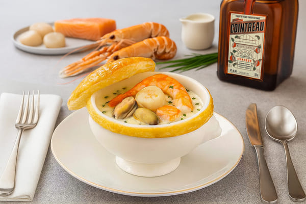 코인트로를 곁들인 해산물 스프